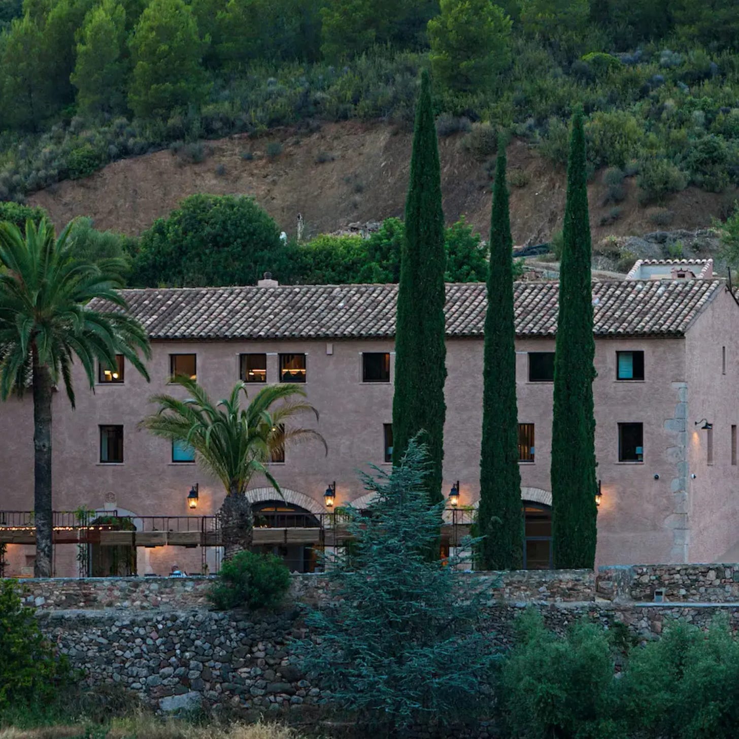 Cuentan que en el siglo XII, los monjes cartujanos fundaron su monasterio a los pies de la Sierra del Montsant. Ocho siglos después, su granja, se ha convertido en un espacio lleno de calma entre montañas. El hotel Terra Dominicata cuenta con su propio huerto y hasta una bodega, donde además se puede conocer cómo se elaboran los famosos vinos del Priorat. La carta de su restaurante, en el que puedes cenar de noche entre sus olivos, incluye solo ingredientes de la comarca, con algún trampantojo de postre como el que te enseño aquí bajo. Lo más bonito, sus atardeceres de verano.
